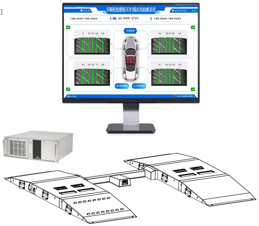 本系統是由北京匯豐隆智能科技有限公司開發(fā)并擁有自主知識產權的一款全自動化乘用車輪胎磨損3D掃描在線檢測系統。車主/司機僅需駕駛車輛從檢測系統駛過,檢測系統即可快速、準確的檢測出車輛輪胎的磨損狀態(tài)并可在顯示屏或及智能電視上顯示出本次檢測結果。檢測報告具有精度高、速度快、顯示界面信息齊全等特色。同時,檢測報告記錄了被檢測車輛的車牌及車型信息,便于日后方便準確查詢及對比。